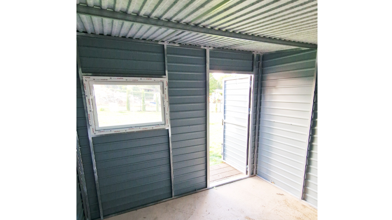 A DELUX kivitelű fém kerti tároló (más néven lemez tároló vagy trapézlemez kerti tároló) alapára már tartalmazza a gyártást, a szállítást és az összeszerelést.