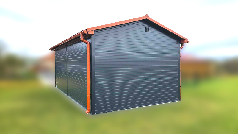 • Színek: fényes antracitszürke RAL7016 (falak), aranytölgy (kapu, ajtó), fényes rézbarna RAL8004 (tető)